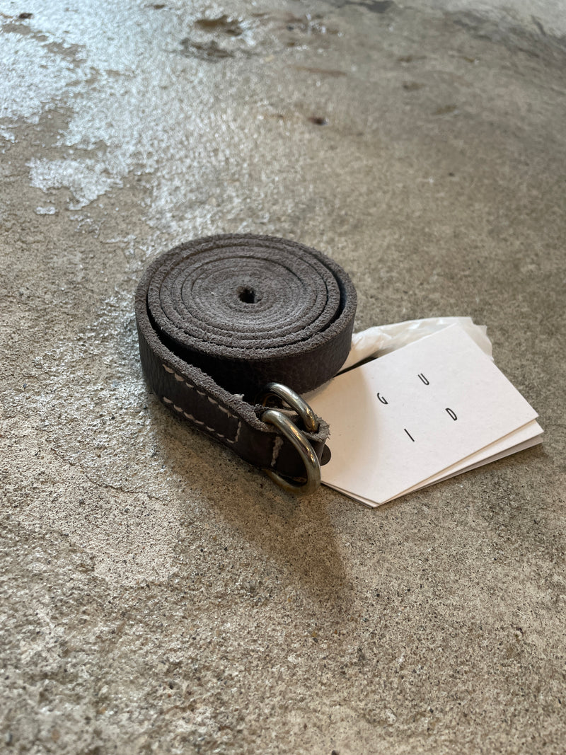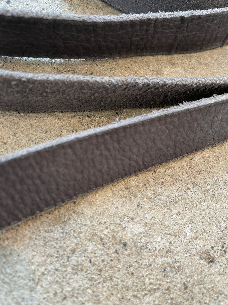 BISON LEATHERならではのシボの表情やアンティーク加工を施したリングパーツなどが、ナローベルトらしからぬ存在感を放つ一品。