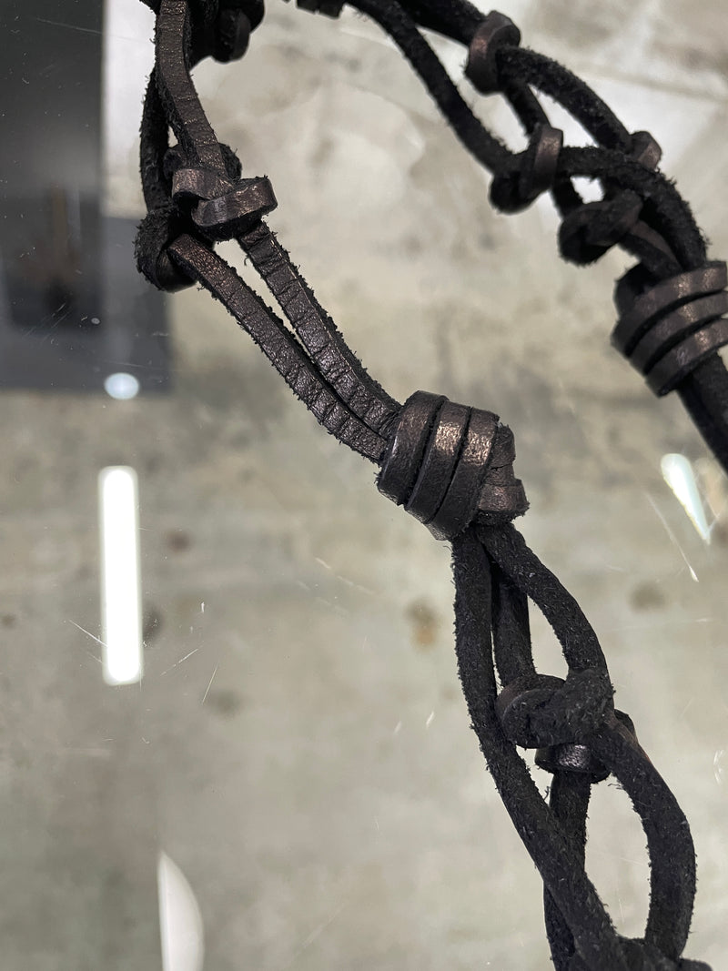 重厚感のあるGROPPONE LEATHERをランダムに編み込み、独自の表情を生み出したプロダクト。