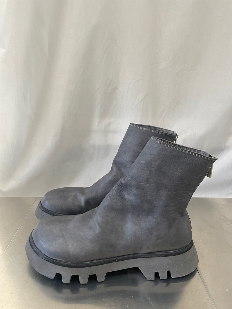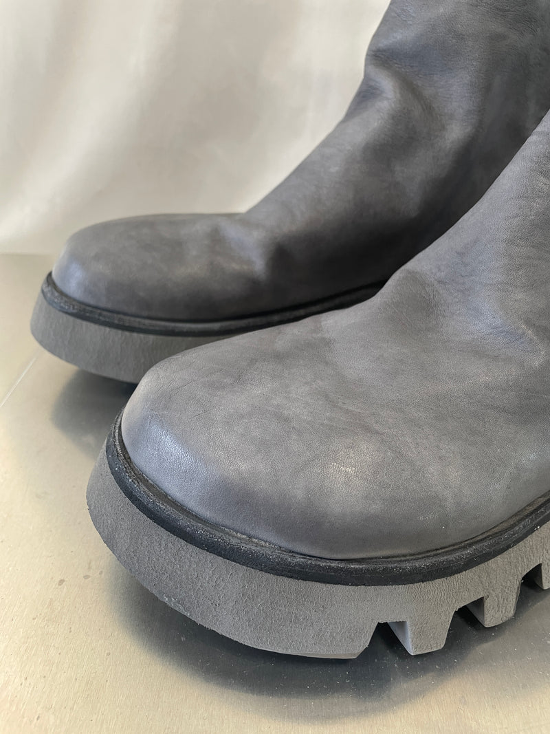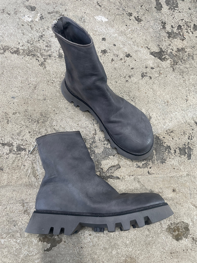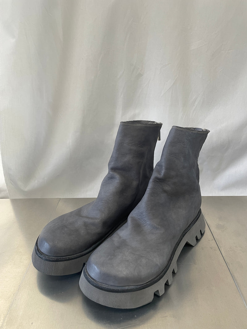 軽量でありながら耐久性に優れる発泡素材で開発された、VIBRAM Vi-Liteソールをセットした本作は、GUIDIラインナップ中における定番的なバックジップブーツである796や788といった品番とは似て非なる佇まいを有したプロダクト。