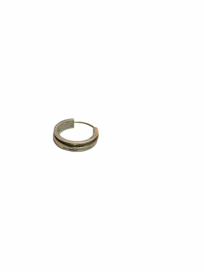 窪みを持たせたリングの中央に10金線をレイヤーしたリング。