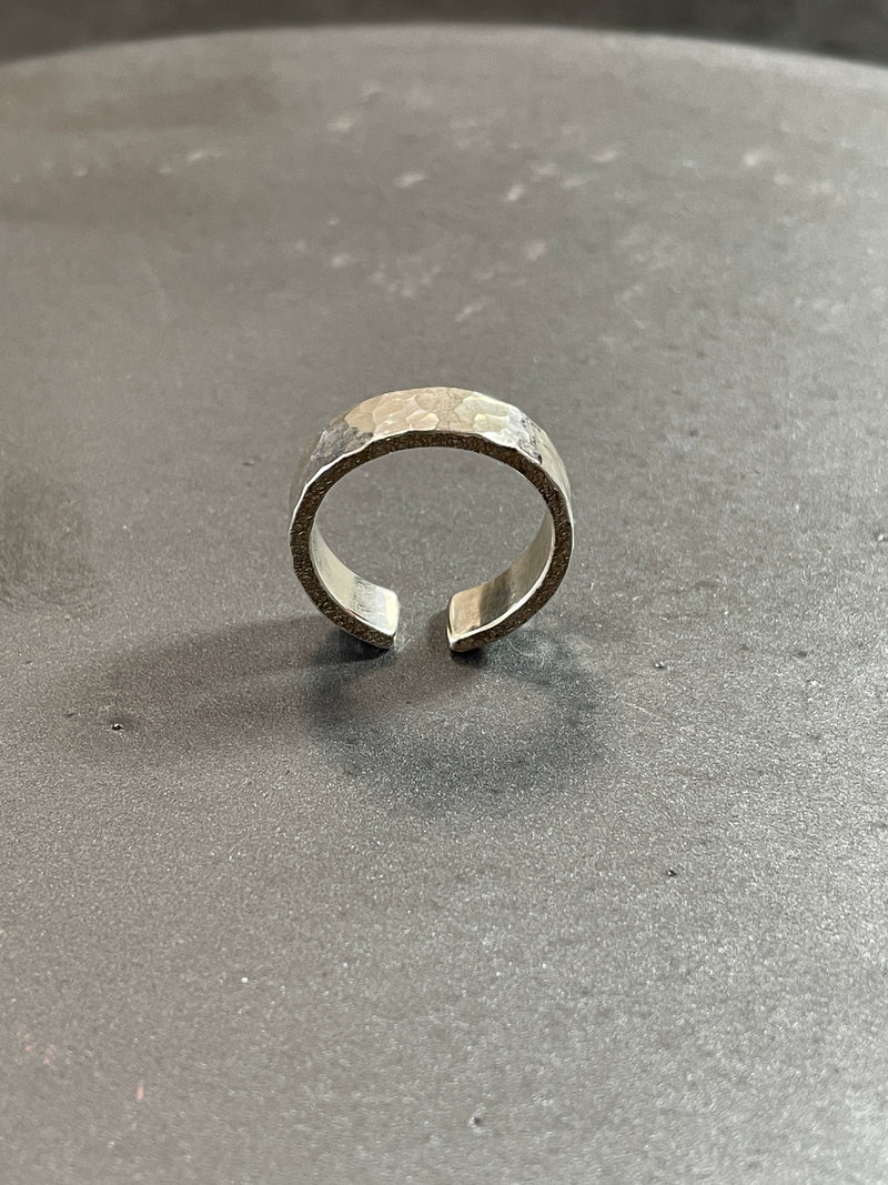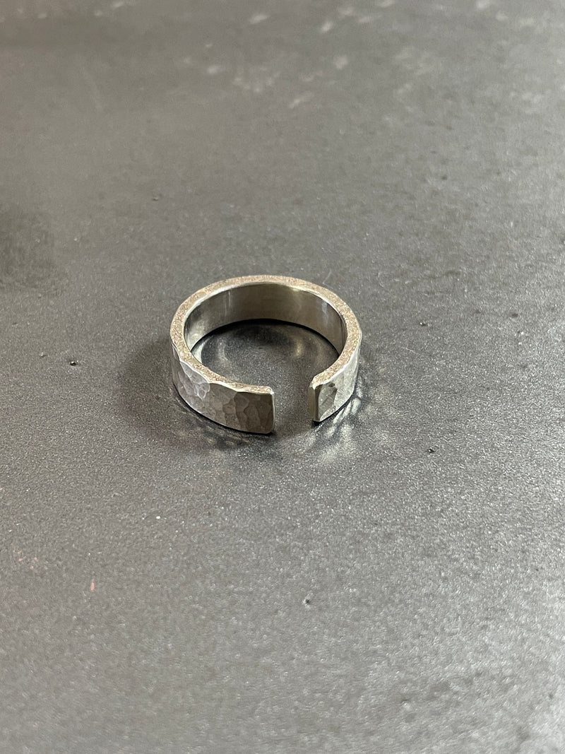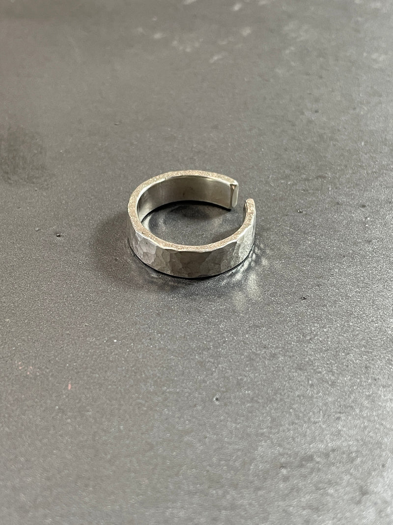 表面に槌目、側面にSTONEの加工をそれぞれ施し、角度によって変化する豊かな表情を楽しめるアイテム。