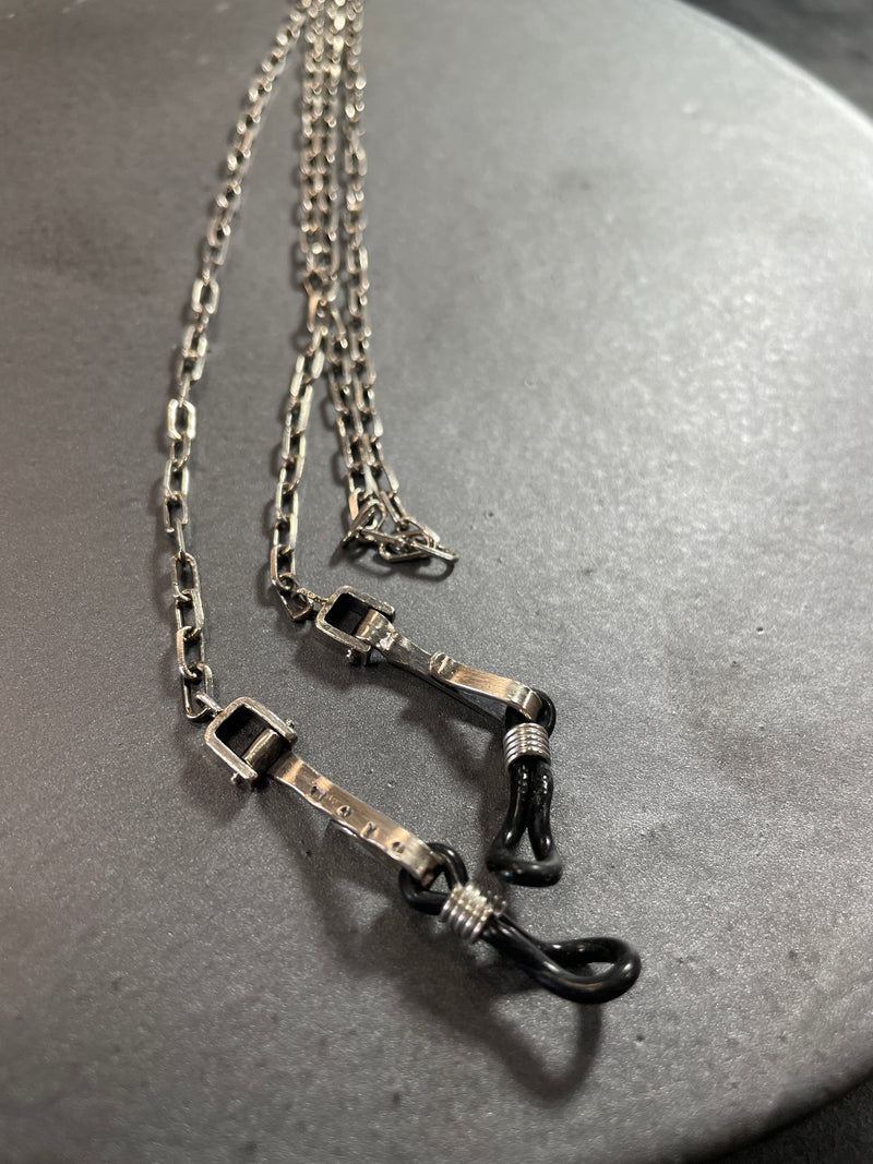 両端の留め具には、構造物を思わせるiolom独自の美意識によって形成されたフックパーツを採用。
