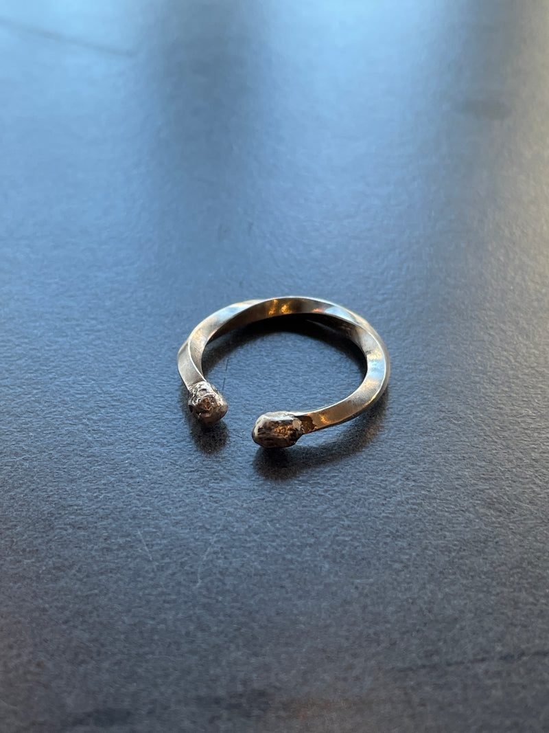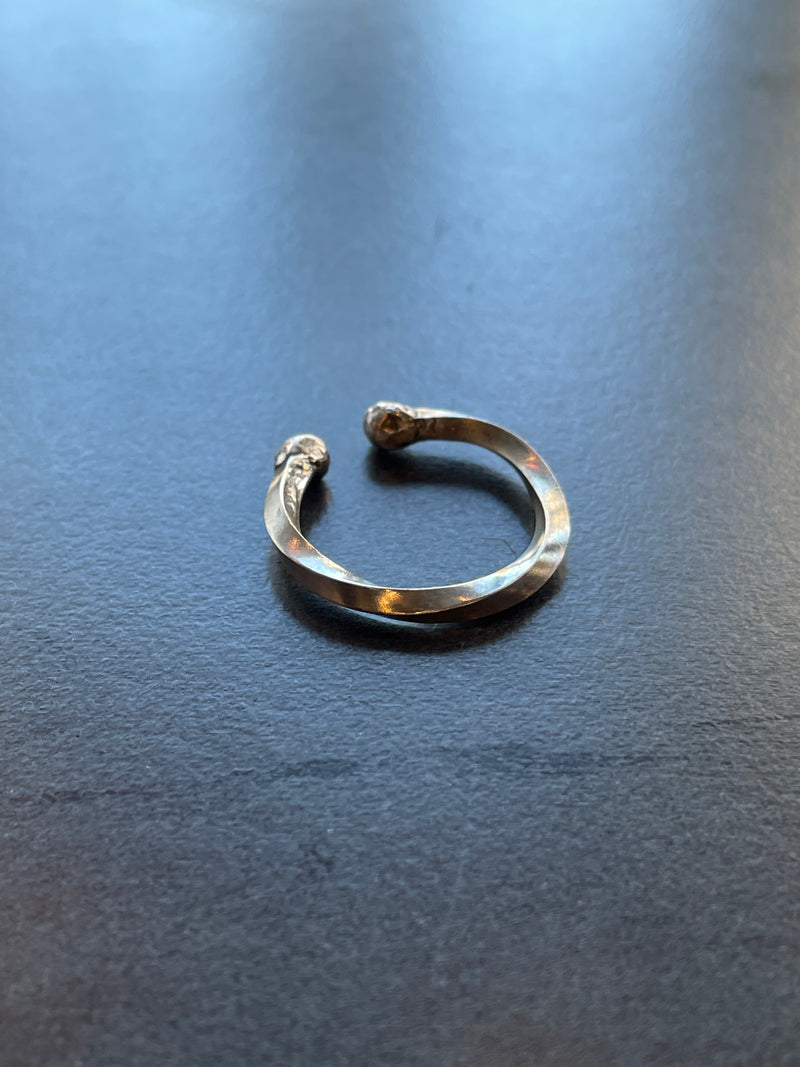 ツイストさせたピラーの両端にメルト加工を施したイヤーカフ。
