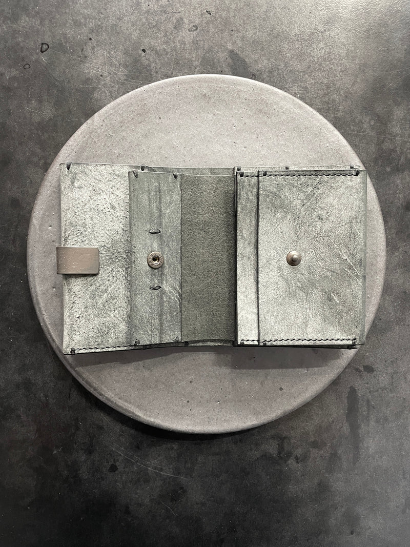 小銭入れを開閉するスナップボタンには、ドイツPRYM社のパーツを採用しており、作品の持つ美しい空気感を静かに助長する。