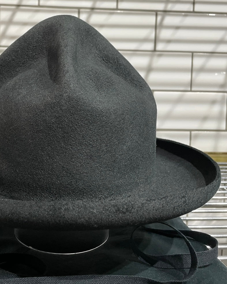 上質なウール原料をベースに、IRIES H.M.独自の技法である【COLORING】を用いて作成されたマウンテンハット。