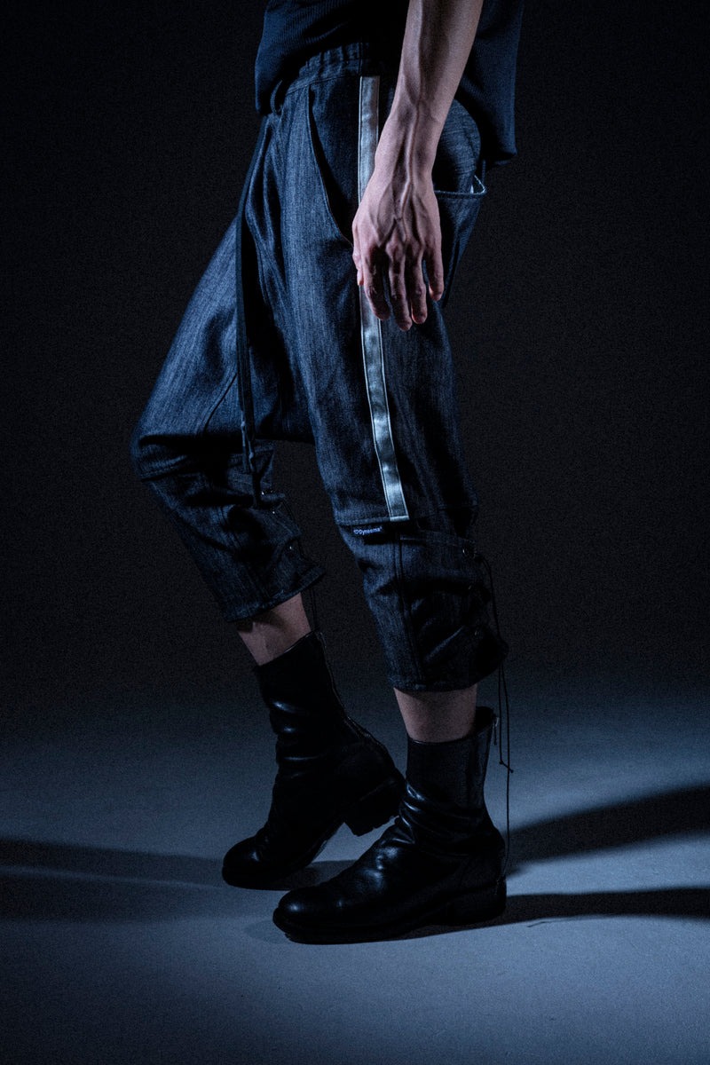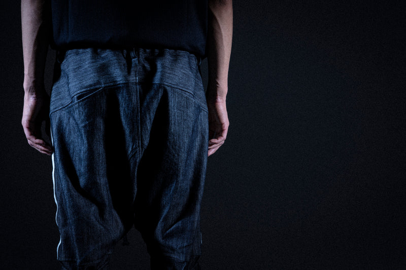世界最強の繊維とされる「Dyneema®︎」を混紡したデニムファブリックを使用したPRASTHANA EXTRA ISSUEとしての第一弾リリースとなるサルエルパンツ。