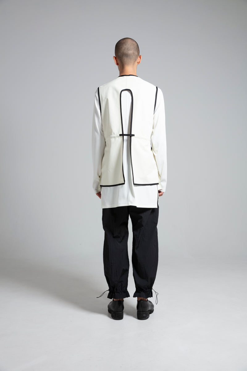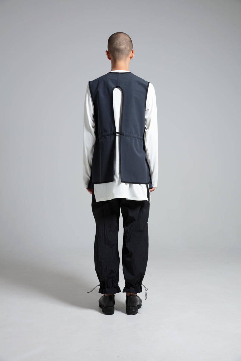 3レイヤーファブリックとダブルフェイスメッシュファブリックを採用したフロントオープン型のベスト。