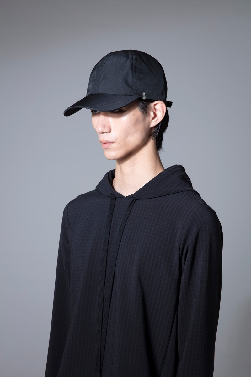 プロダクトアウトラインはバイザーをカーブさせ、浅すぎず深からず、のバランスに留意して作成したキャップ、バックアジャスターにはドイツFIDLOCK社製のマグネットバックル、左サイドにはジュエリーブランド「iolom」に特注した錫製のプレートを配している。