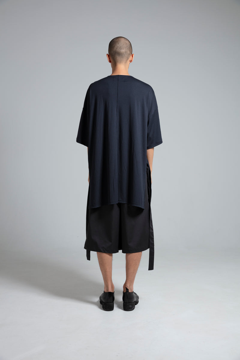そのシルエットのインパクトに対して、首元の仕様は同素材のLTS同様裏バインディング始末、裾にはスリットを採用、凡百のストリートスタイルに陥らない、prasthanaの物作りにおける重要な押し引きのバランス感覚を体感できるプロダクト。