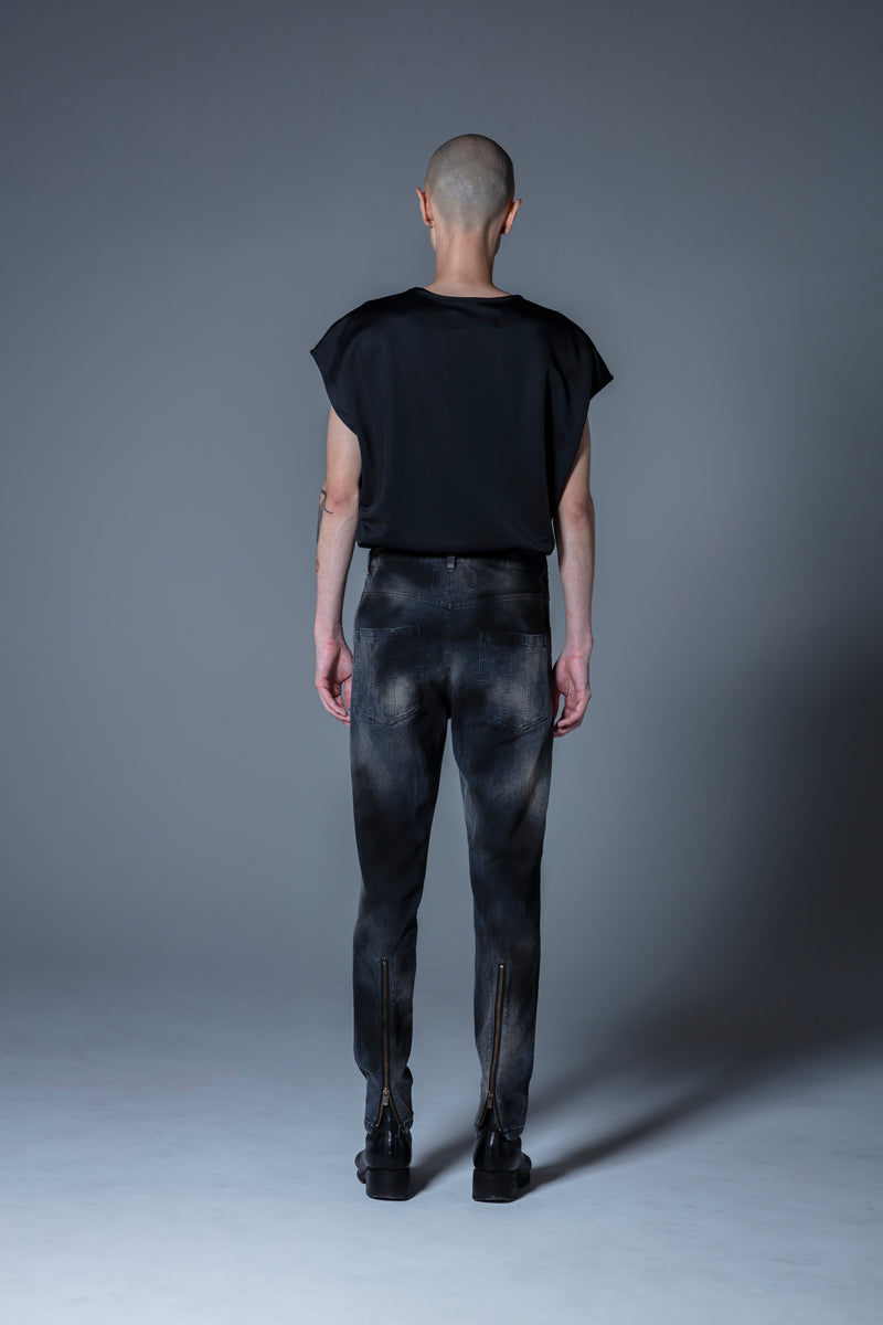 prasthana : back zip jeans (DUSTY BLACK)