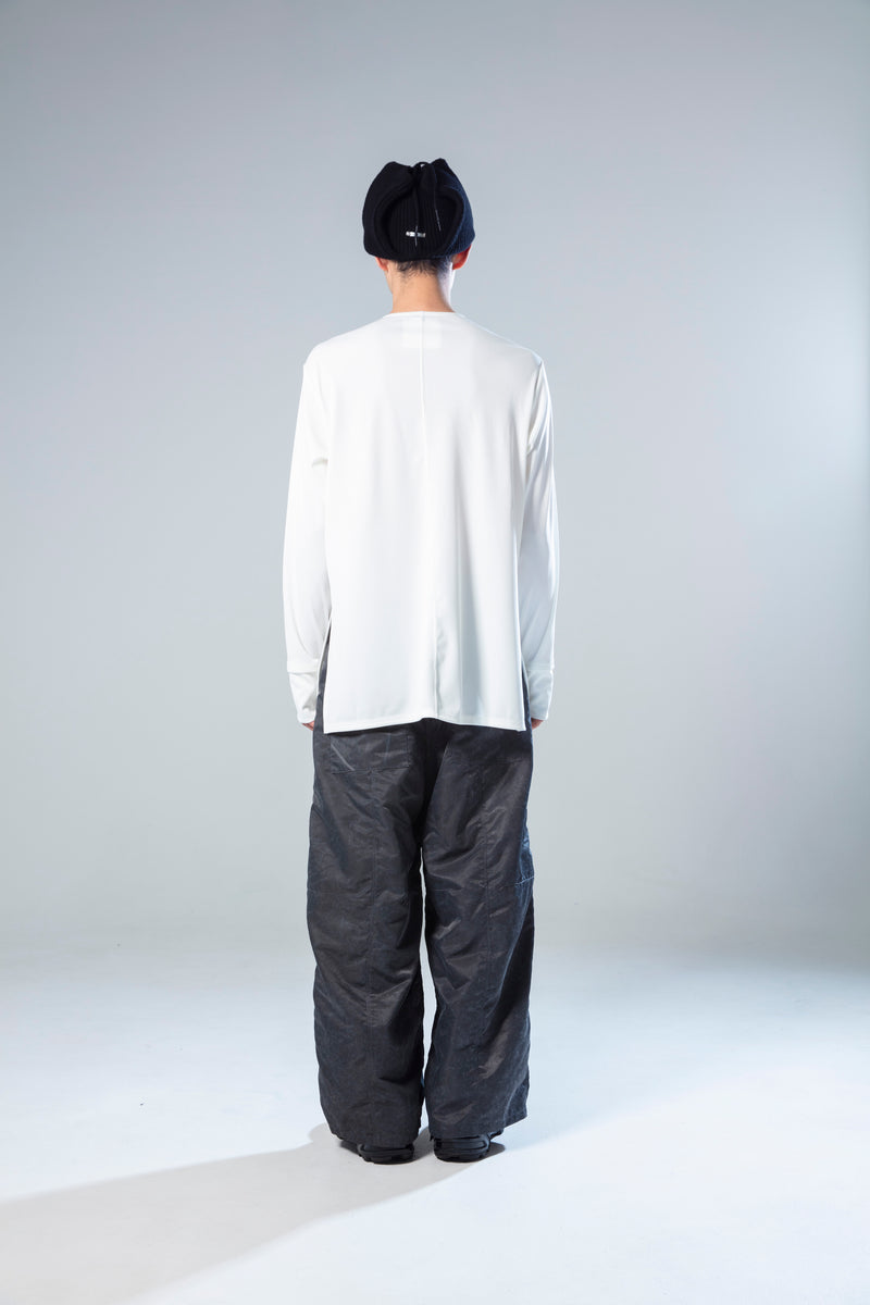 袖口はレイヤードデザインに加えサムホールを配置、サイドスリットも完備することで、インナーとしての利便性の向上を図っている。