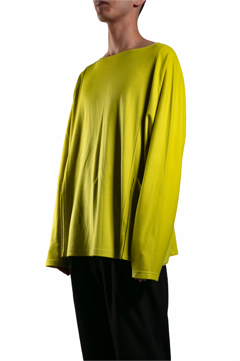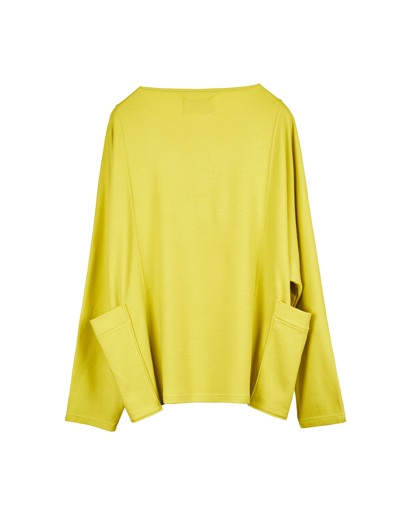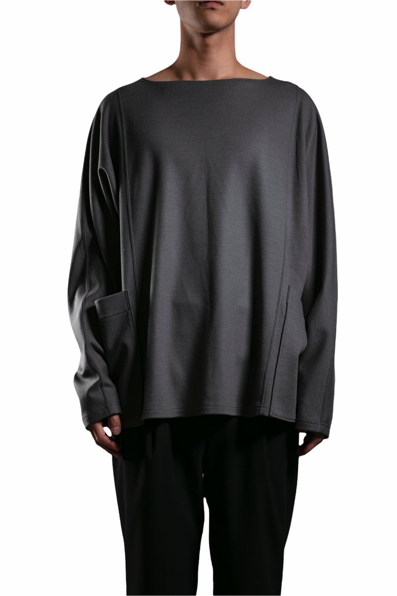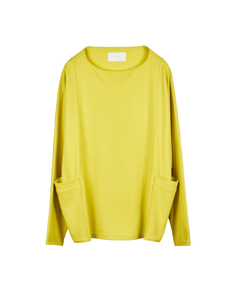ブランド独自のドルマンスリーブ型と、ボートネックデザインを採用する事で、ミニマルながらキャラクターを確立したアイテム。
