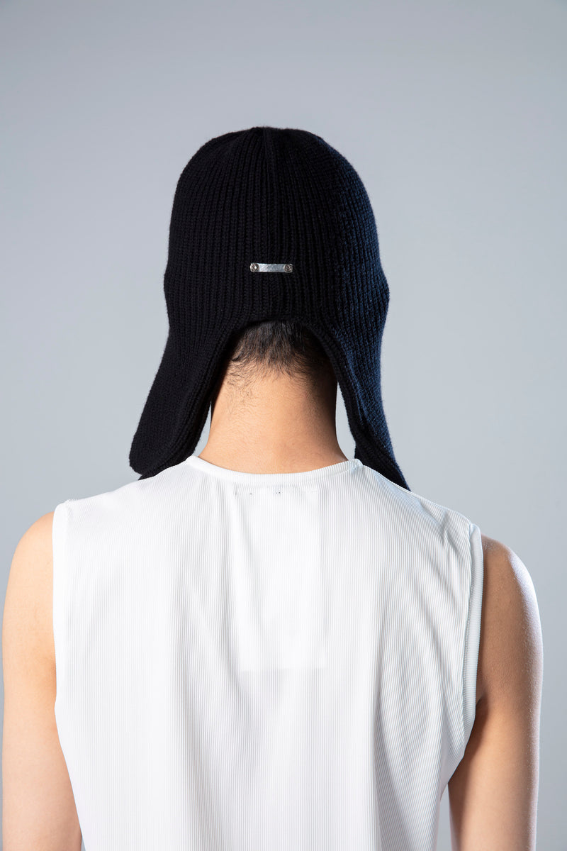 国内有数の生産背景にて作成しているニット製ヘッドウェアの新型は、イヤーフラップ付属のフライトキャップをモチーフとしたデザインにてリリース。