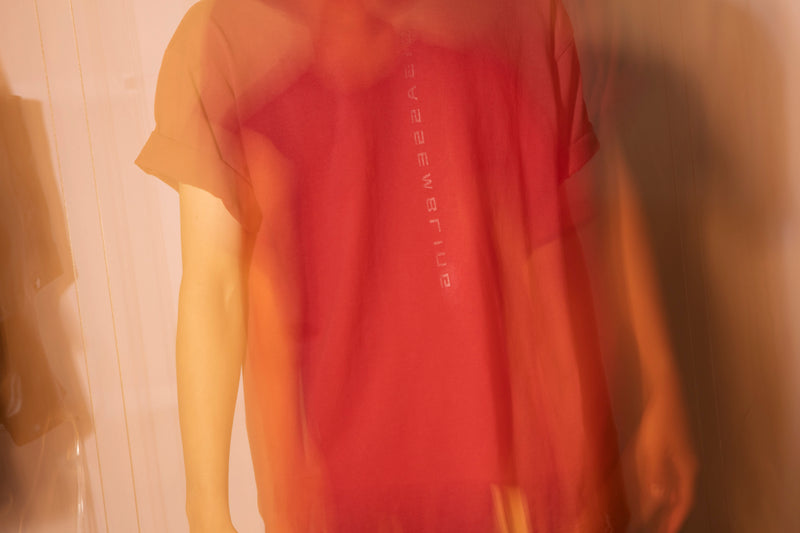 S/S Tシャツ、L/S Tシャツ2型ともデザインは同一で、[解体]という意味を持つ[DISASSEMBLING]という言葉をデザインに落とし込み、透明インクでフロントにプリント、更にこのコラボレーションの為に作成したプリントネームをバックネックポイントに付属しました。