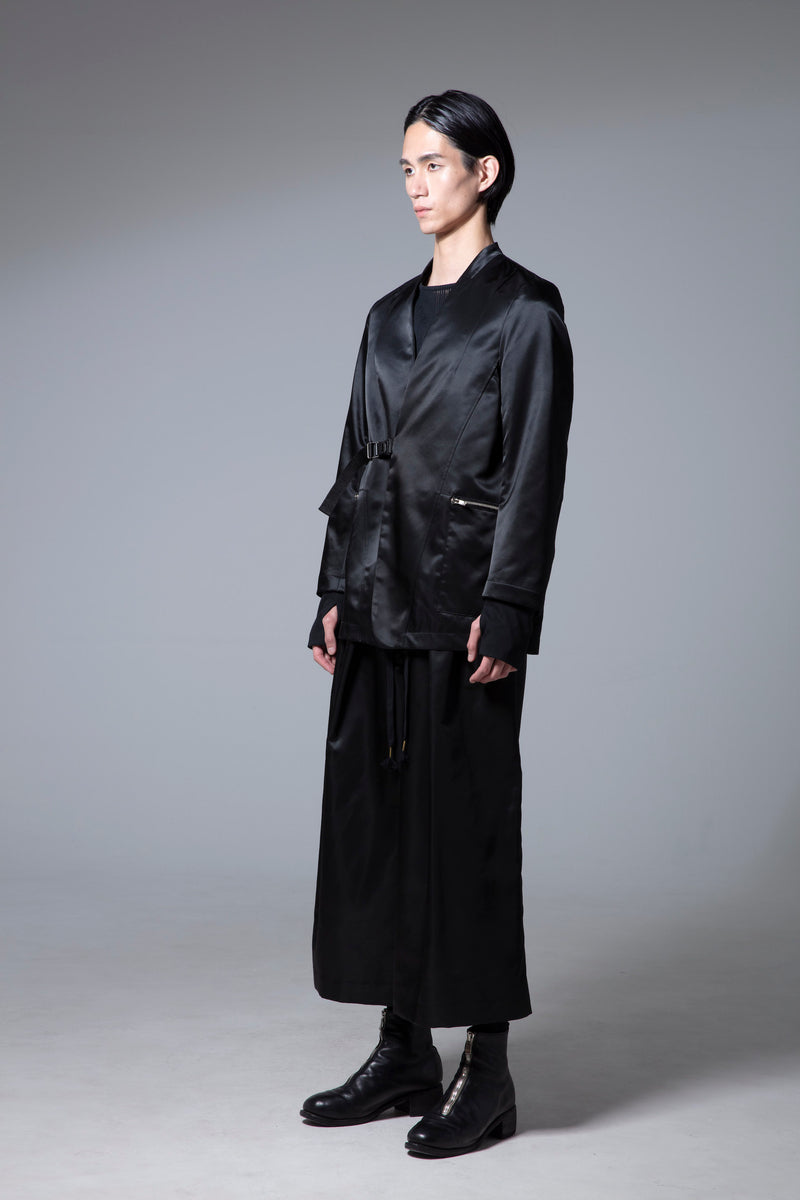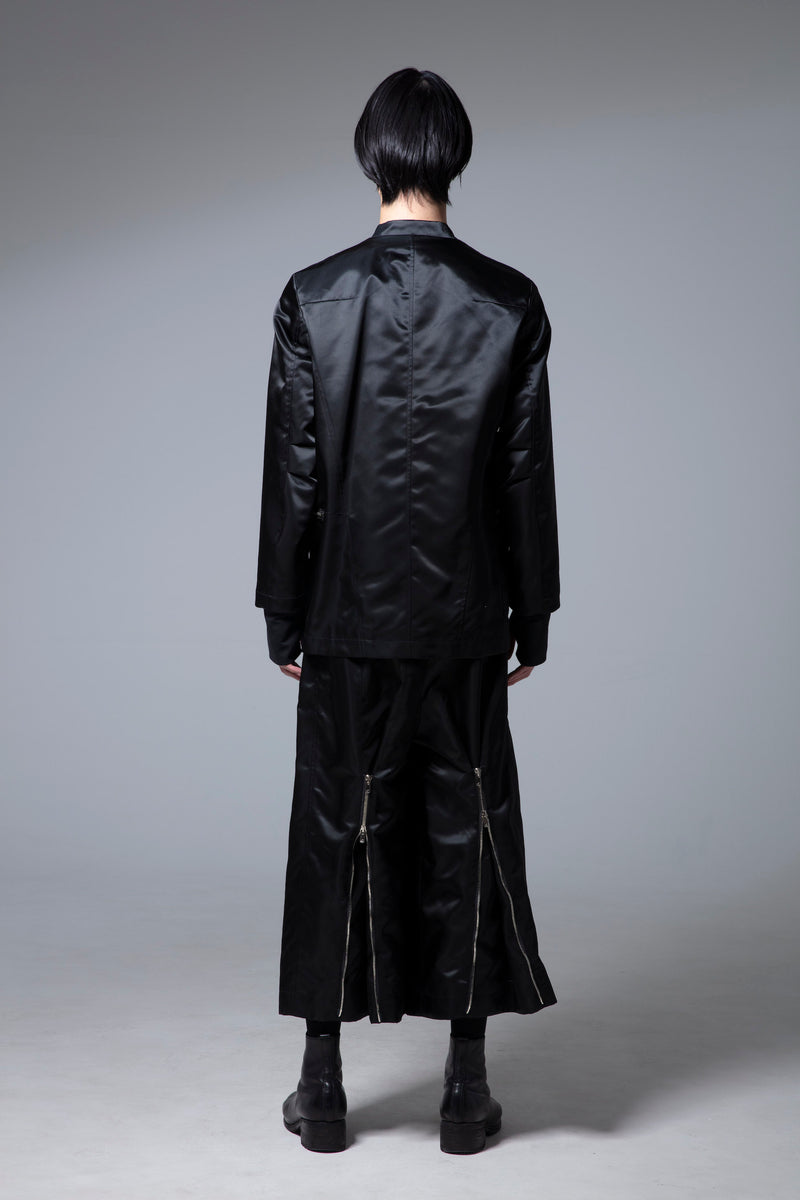 外観はテックウェアに通じる要素が多いが、あくまでジャケットとしての提案である為、prasthanaのジャケット制作におけるベーシックな作り込みとして、内ポケットの仕様は二段台場仕立てとし、前振り設定の袖付け、肩及びアームホールのセット感など、しっかりと重みのあるプロダクト像を表現した。