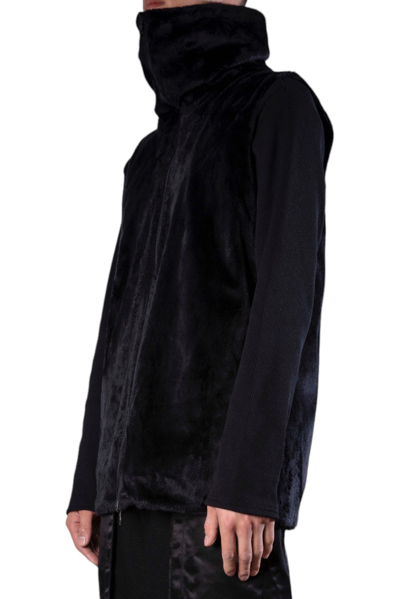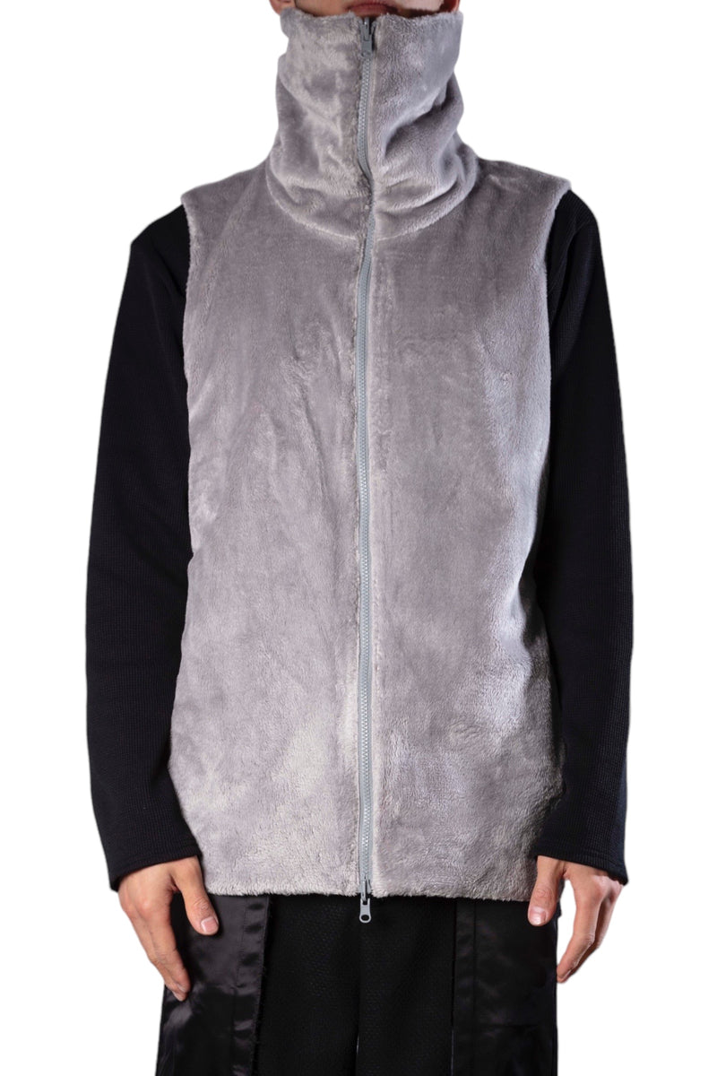 ポリエステル製のマイクロ糸による微細な表情を持つボアと、マットな表面感のタフタを採用した、リバーシブルでの着用が可能なベスト。