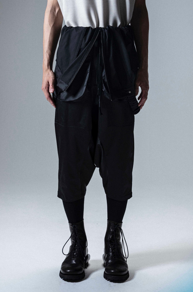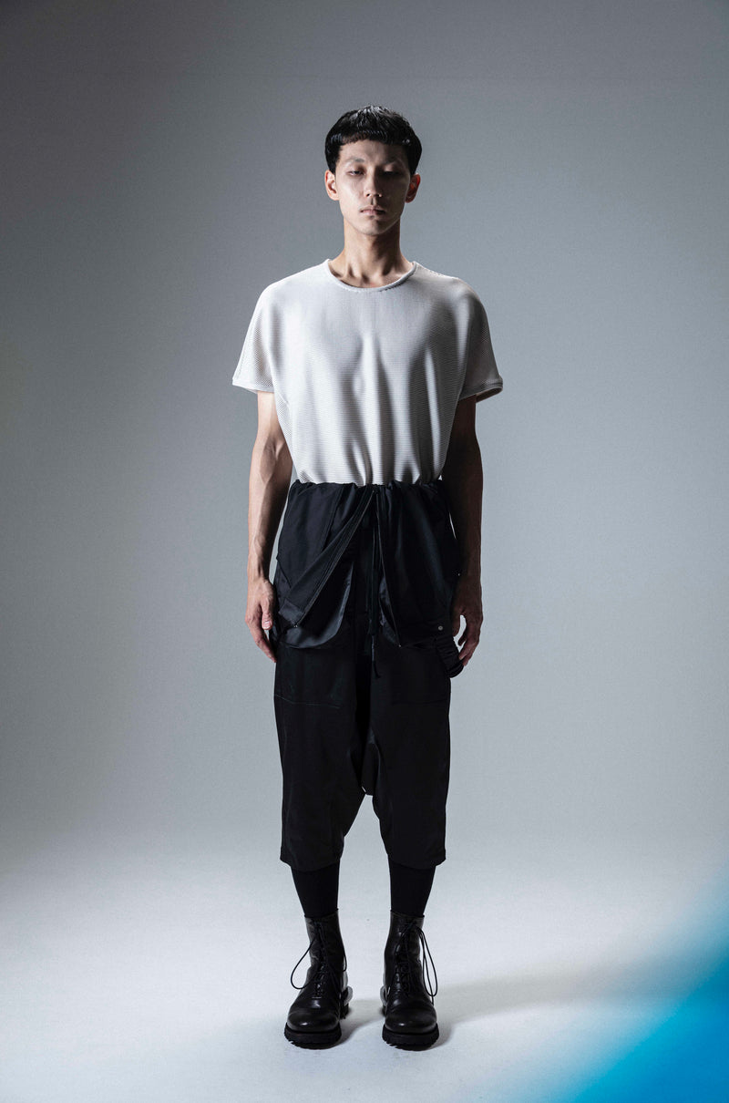 ウエスト位置にはベルトループとドローストリングを内蔵しており、任意の方法でウエストマークが可能、着こなしの幅を広く担保。
