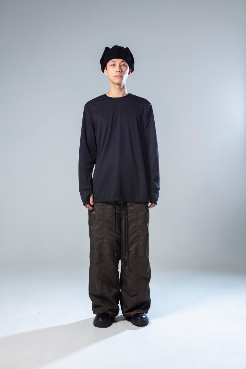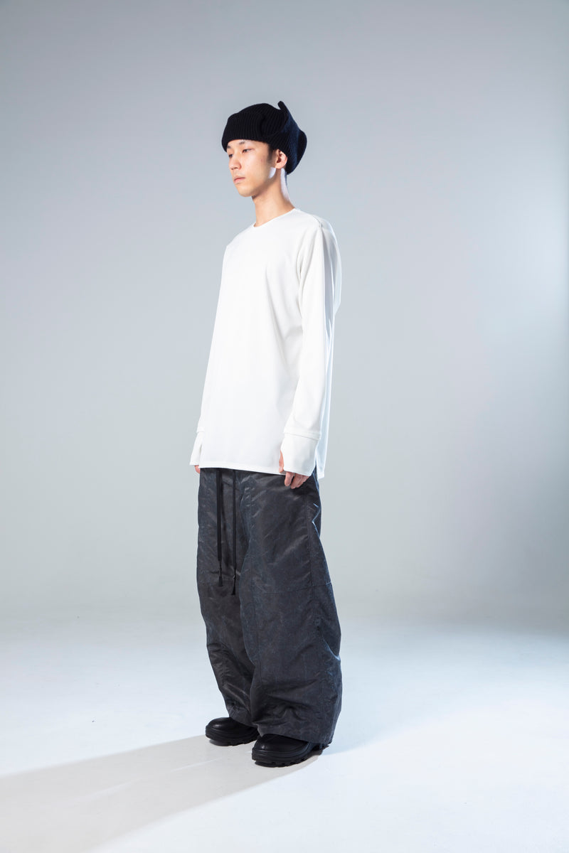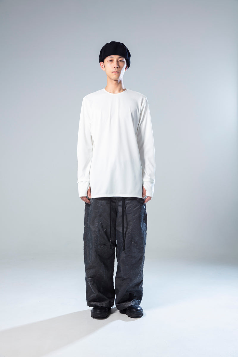 袖口はレイヤードデザインに加えサムホールを配置、サイドスリットも完備することで、インナーとしての利便性の向上を図っている。