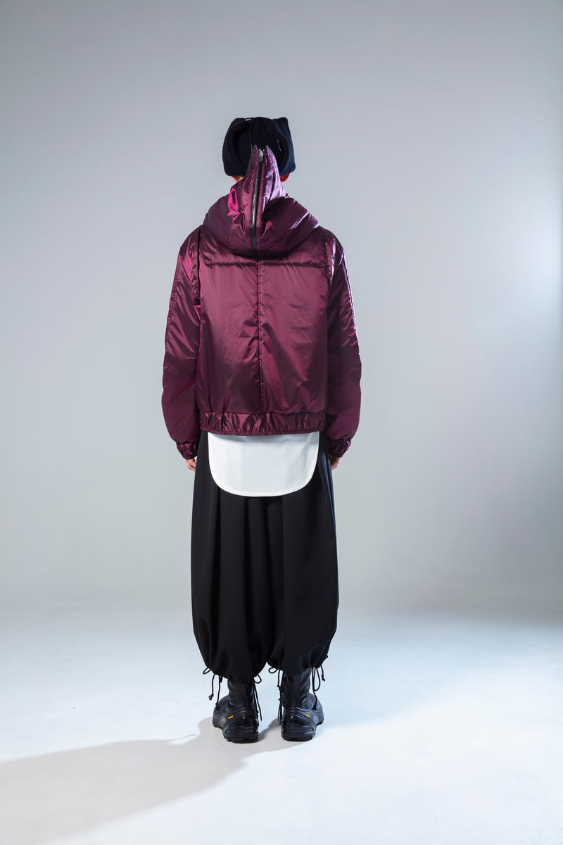 フロント及びフードには、YKK AQUAGUARDファスナーを配置、大振りにデフォルメしたフードは、ファスナーを使って二分割可能なデザイン。
