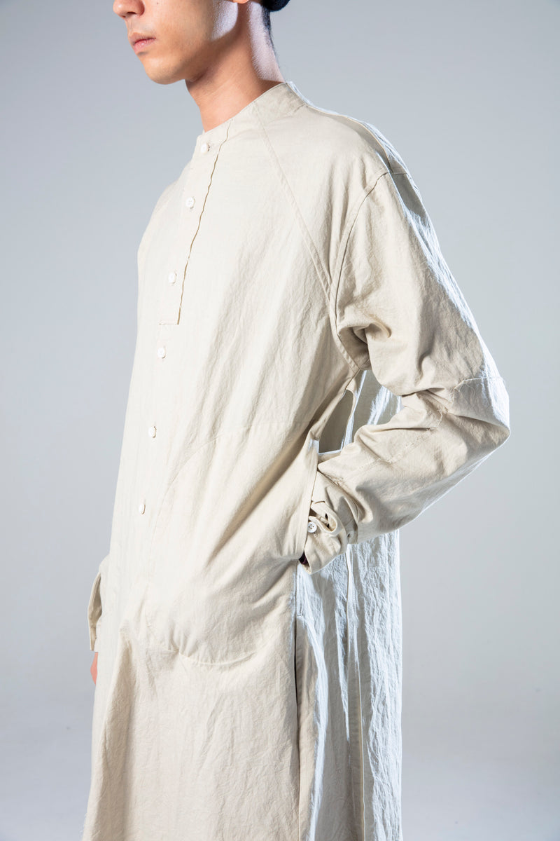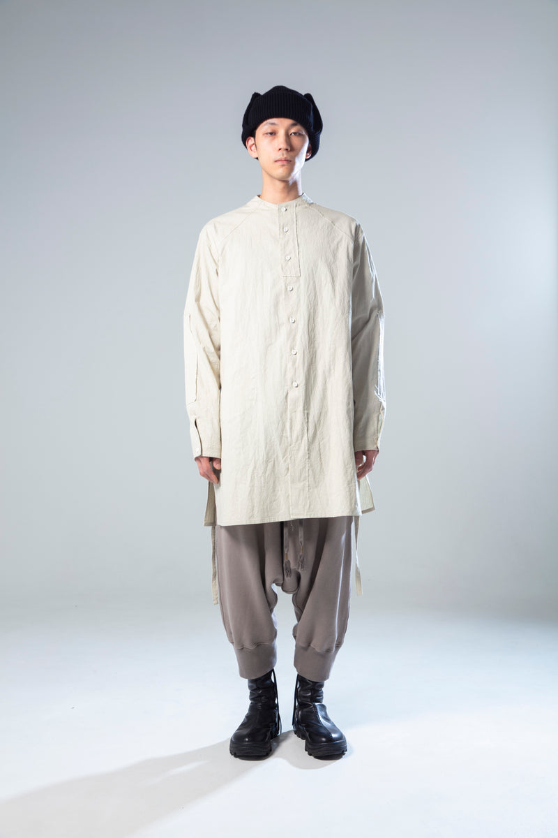 サイドにはシームに沿ってポケットを完備することで、生地のウェイトと併せて、羽織り(ライトアウター)としての着用も想定。